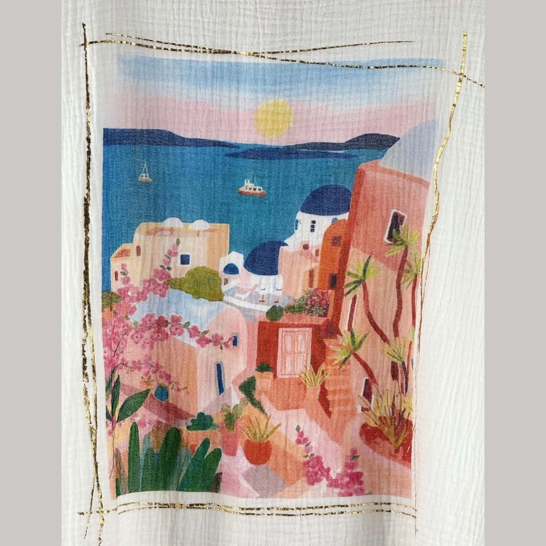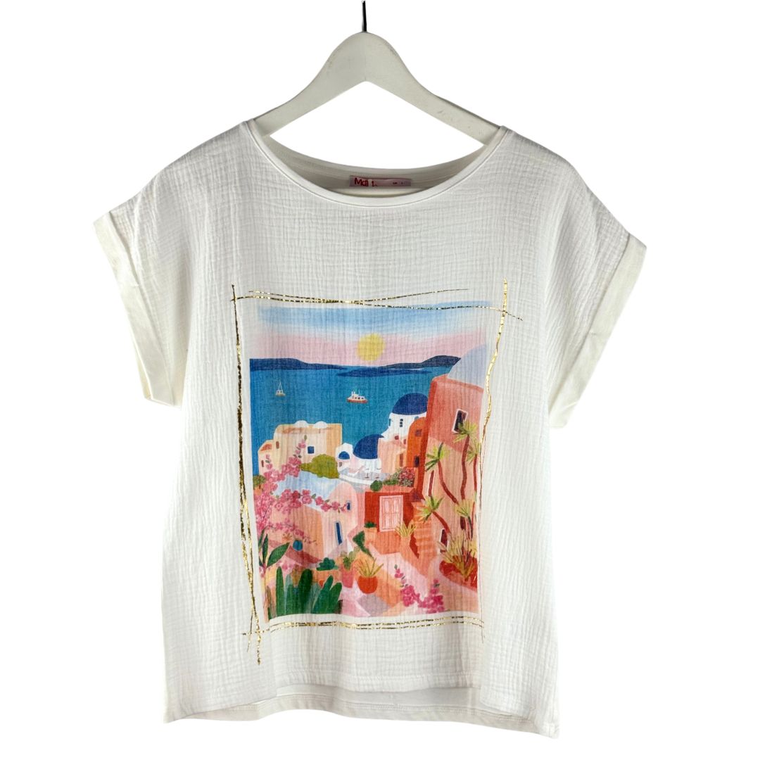 El diseño original estampado, inspirado en paisajes mediterráneos, añade un toque de color y sofisticación a tu vestuario. Perfecta para combinar con jeans, faldas o pantalones, esta camiseta REVER se adapta a cualquier estilo y ocasión.