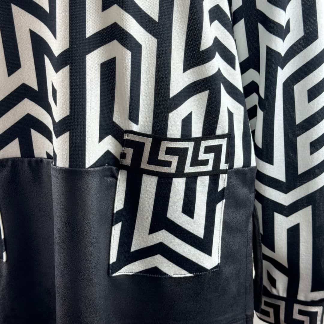 Este elegante jersey blanco y negro de la firma Mapant’s destaca por su audaz diseño geométrico en blanco y negro, que le confiere un aire moderno y distintivo. Confeccionado en un tejido compuesto por un 95% de poliéster y un 5% de elastano, este jersey ofrece una combinación ideal de durabilidad, suavidad y un ligero estiramiento, lo que garantiza un ajuste cómodo y favorecedor.