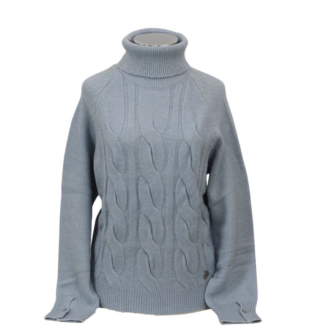 Jersey de mujer con cuello alto en un delicado tono azul celeste. Confeccionado en tejido suave y cálido, combina comodidad y elegancia, ideal para los días más frescos. Su diseño clásico y versátil lo hace perfecto para cualquier ocasión.