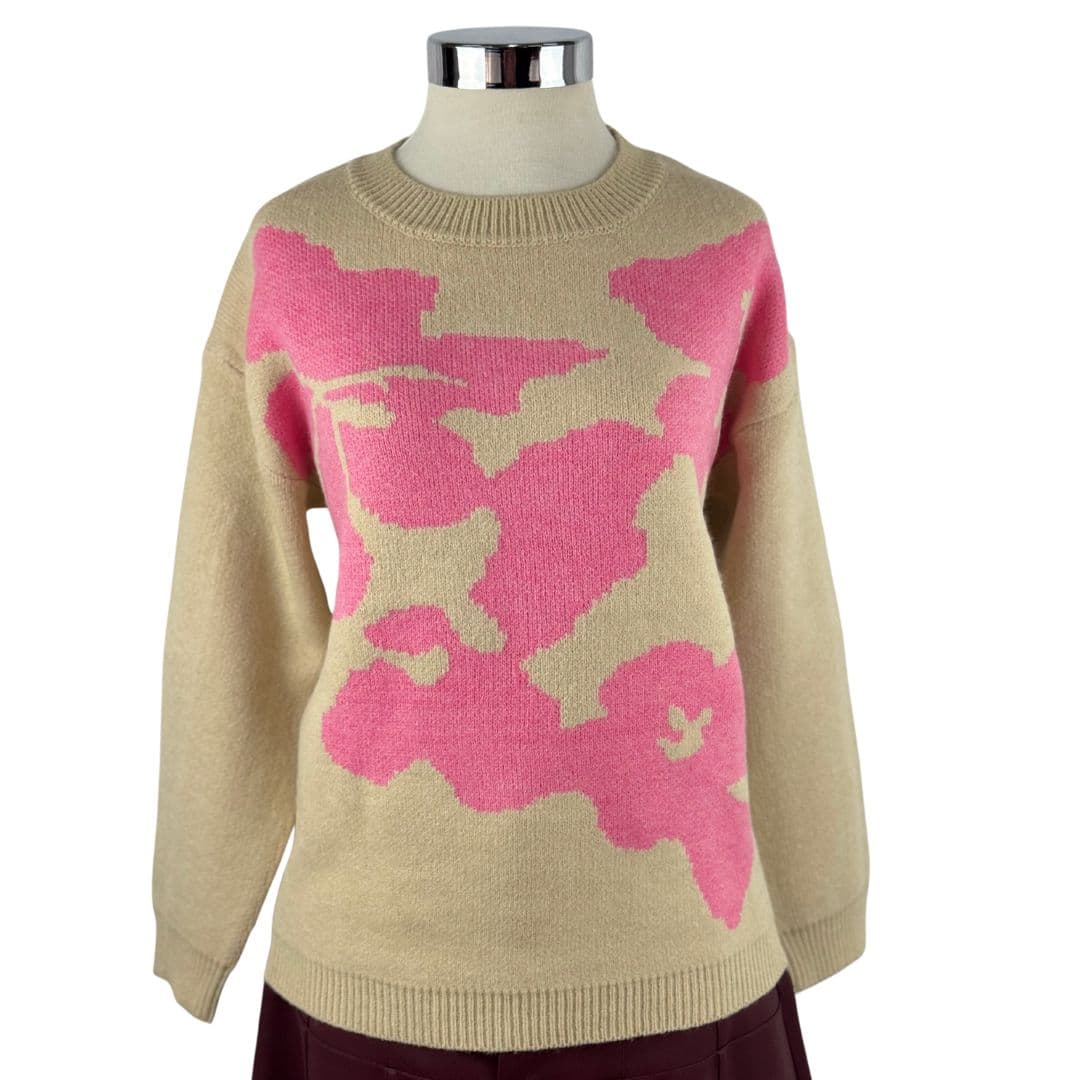 Su original estampado en tonos vibrantes añade un toque de modernidad y sofisticación a cualquier outfit. Ideal para combinar con tus jeans favoritos, faldas o pantalones de vestir, este jersey se convertirá en tu prenda estrella para cualquier ocasión.