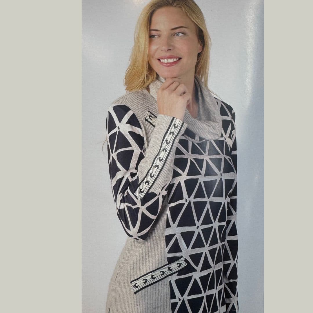 Descubre la elegancia y comodidad en una sola prenda con este jersey estampado de Mapant’s de diseño único. Su vibrante estampado geométrico, confeccionado en un suave tejido de 95% poliéster y 5% elastano, te garantiza confort y un ajuste favorecedor. Este jersey se adapta a tu estilo gracias a su cuello desmontable, que te permite lucirlo con un look casual o más sofisticado.