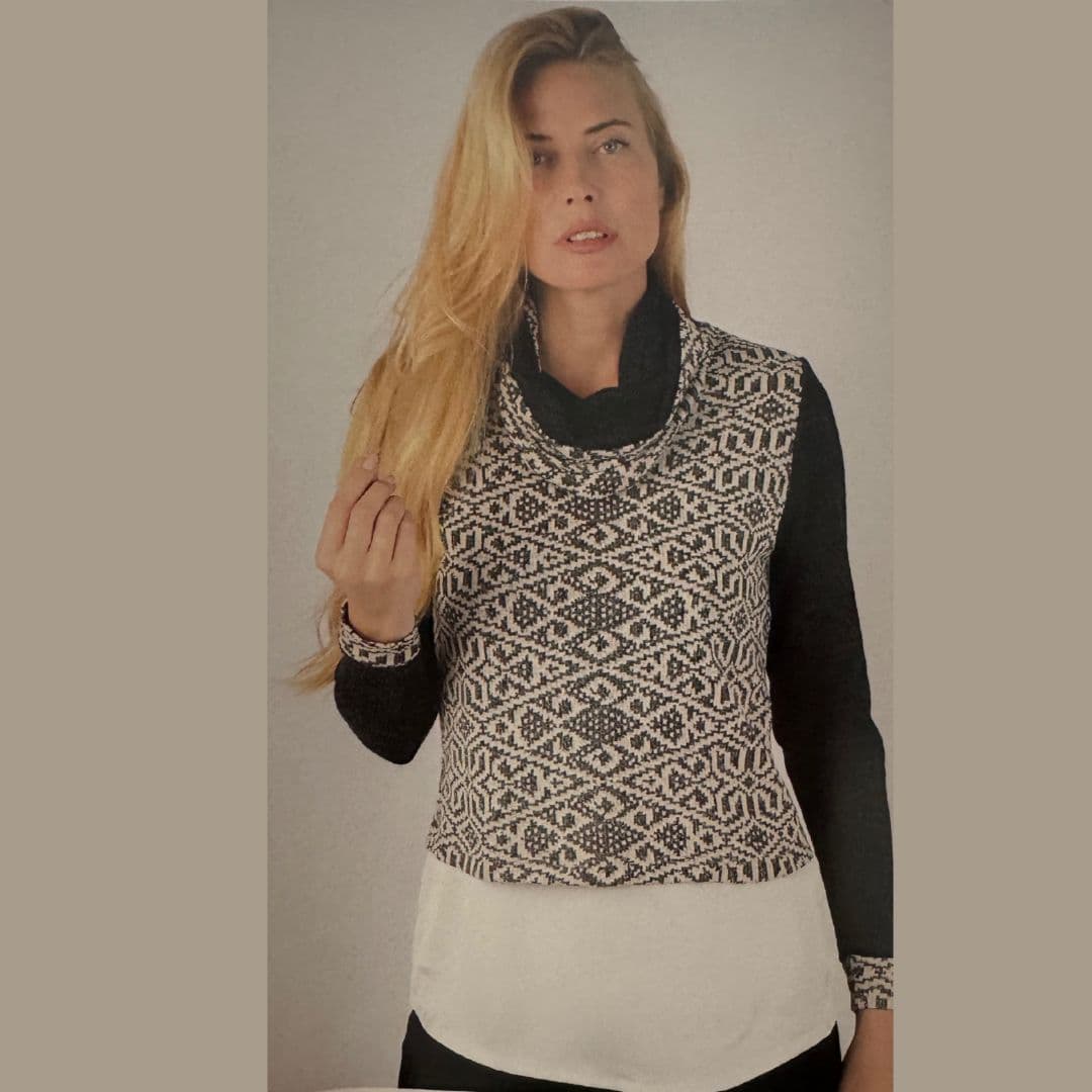 - Estilo: Jersey con estampado geométrico