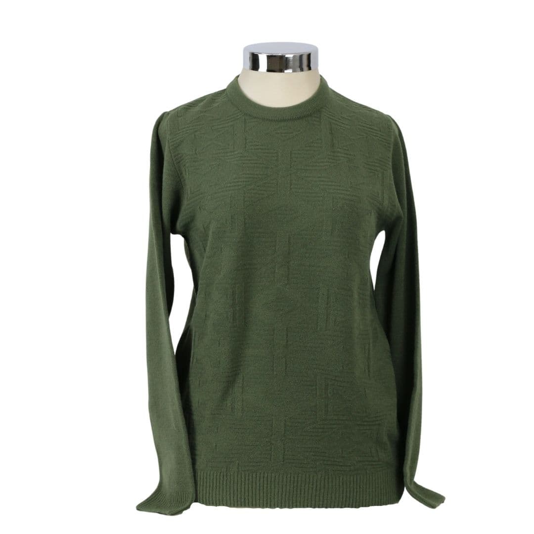 Jersey verde de mujer con cuello caja, confeccionado con una mezcla de 68% acrílico, 29% poliamida y 3% lycra. Su diseño con motivos en relieve añade un toque de textura y estilo, mientras que la combinación de materiales ofrece comodidad, elasticidad y un ajuste perfecto. Ideal para un look moderno y sofisticado.