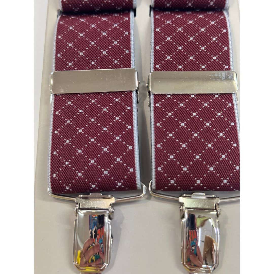 Realza tu estilo con estos exclusivos tirantes burdeos con diseño diamante, la elección perfecta para el hombre moderno que busca un accesorio que combine funcionalidad y elegancia. Fabricados con materiales de alta calidad, estos tirantes no solo te aseguran un ajuste cómodo y seguro, sino que también añaden un toque de distinción a cualquier conjunto.
