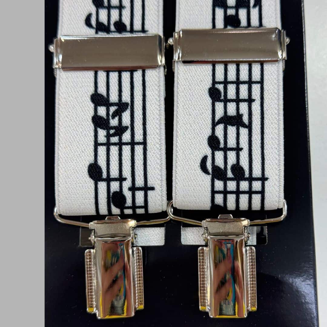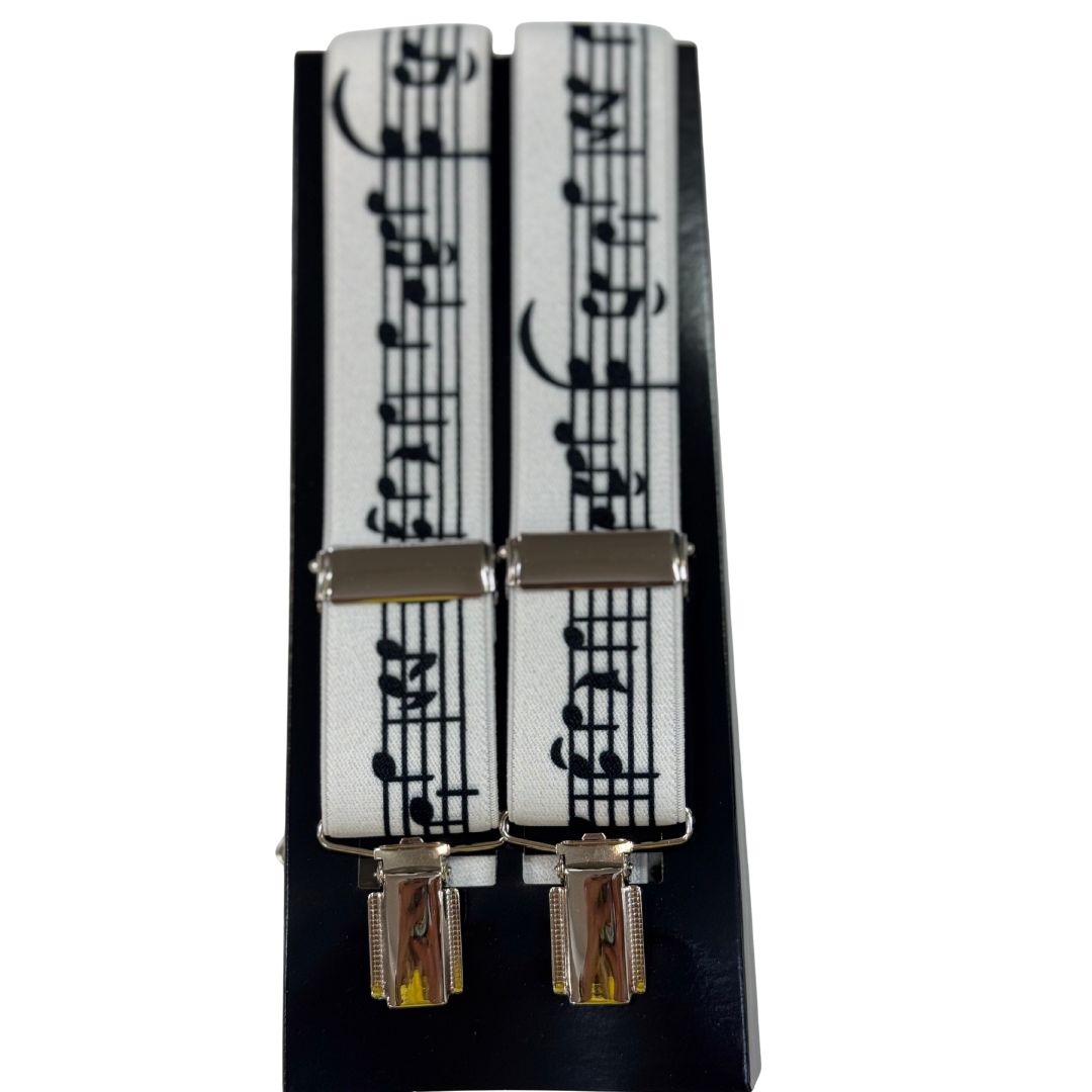 Eleva tu look con estos originales tirantes musicales para hombre adornados con un elegante diseño de notas musicales. Perfectos para músicos, amantes de la música clásica, o cualquier persona que quiera añadir un toque de personalidad a su vestuario.