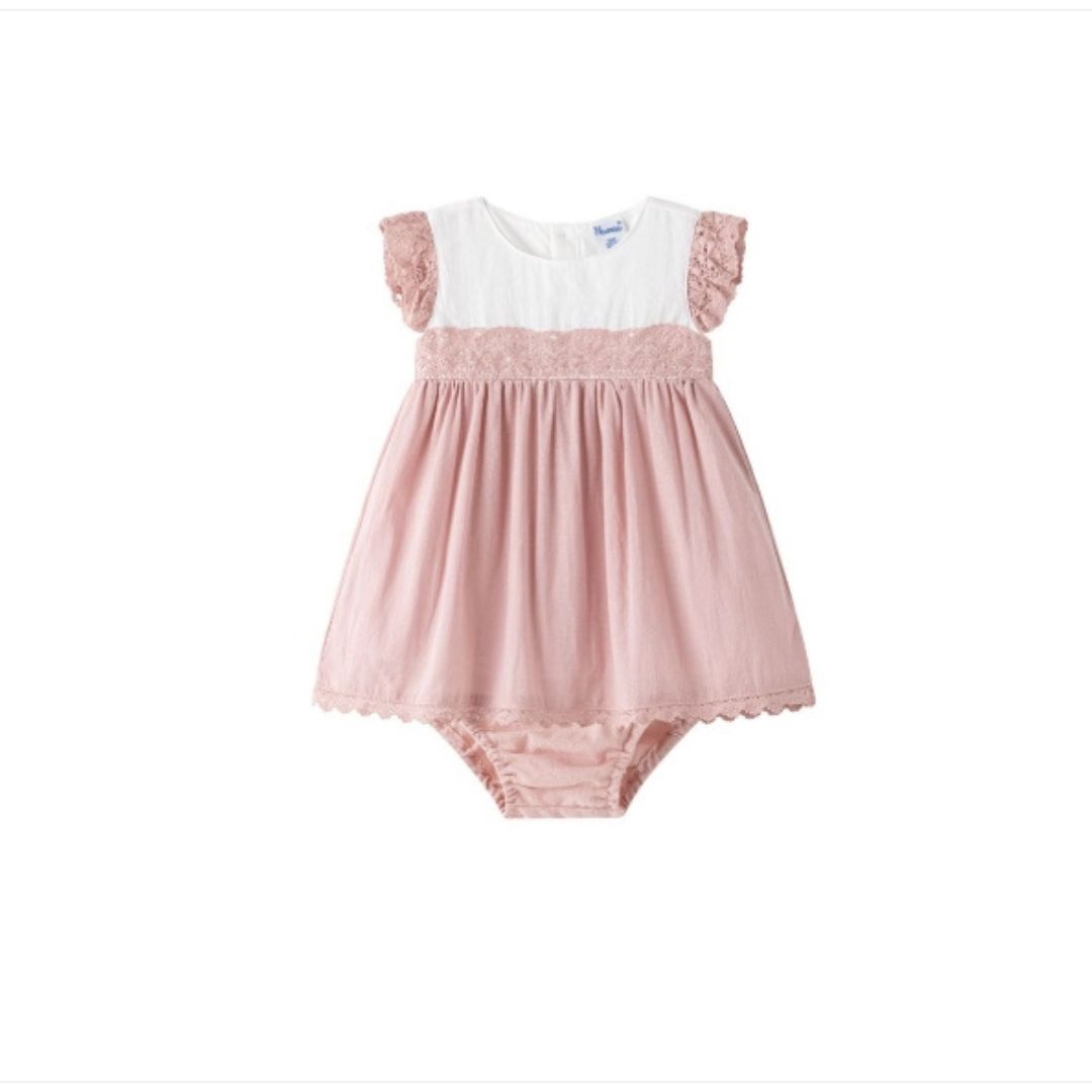 Vestido de bebé de algodón suave para tu pequeña, ideal para sus primeros meses. Confeccionado en 100% algodón natural y suave para la piel sensible del bebé, este vestido con braguita incorporada garantiza la comodidad y frescura que su piel necesita. Disponible en tallas de 6 a 24 meses, perfecto para jugar y explorar con total libertad. También tenemos en mismo modelo en tallas de niña mas mayor , para que las hermanas puedan ir a conjunto .