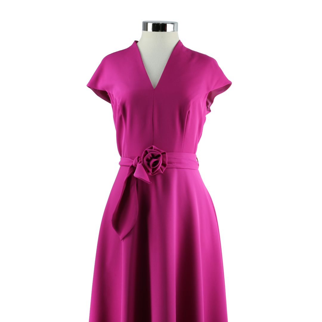 El corte favorecedor de este vestido fucsia , con su escote en V que alarga el cuello y el cinturón que define la cintura, realza la silueta femenina. Ya sea para una jornada laboral, una cena con amigas o un evento especial, este vestido fucsia se adapta a la perfección. Combínalo con sandalias o zapatillas para un look casual de día, o eleva tu estilo con tacones y accesorios llamativos para una noche inolvidable.