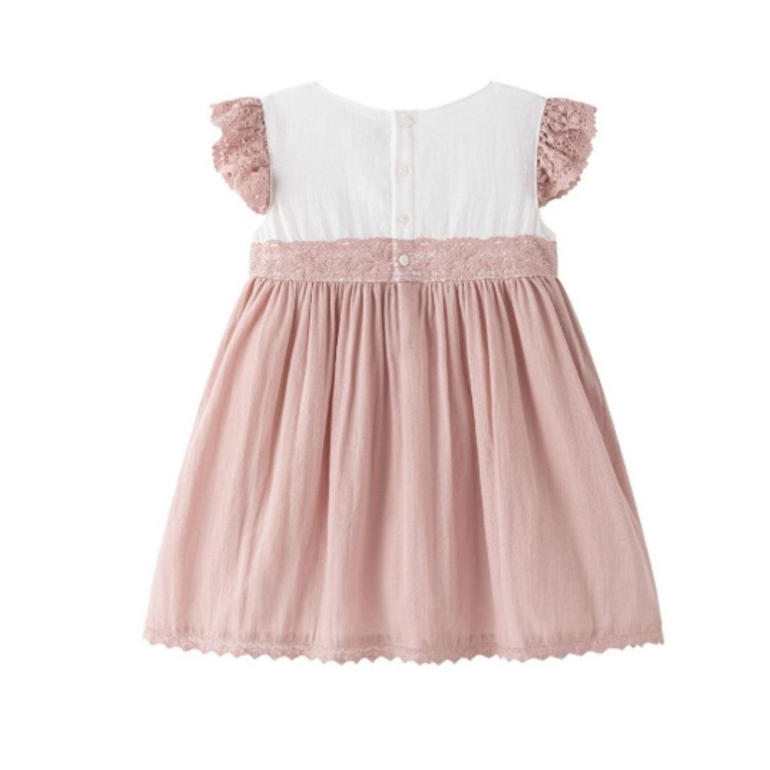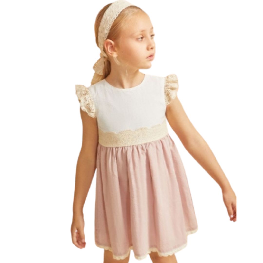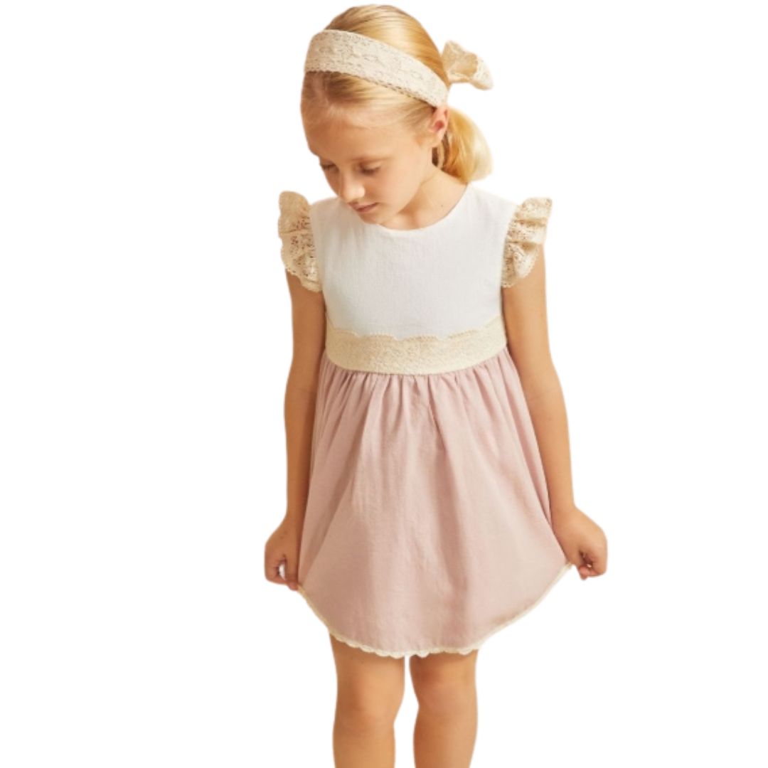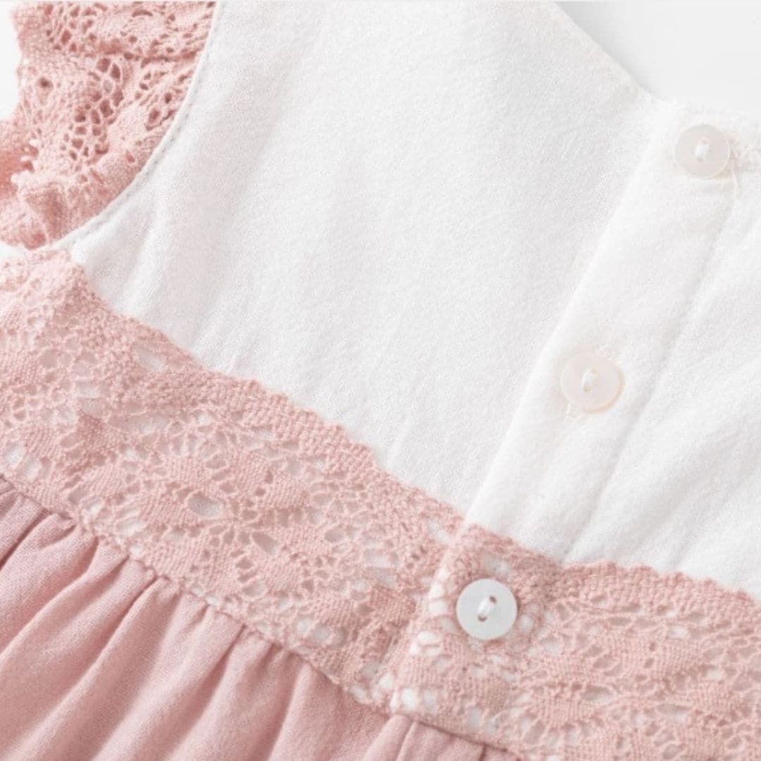 Vestido rosa niña de algodón suave para tu pequeña, ideal para tu princesa. Confeccionado en 100% algodón natural y suave para la piel de la niña , este vestido garantiza la comodidad y frescura que su piel necesita. Disponible en tallas 3,4,5,6,8 y 10 años ,es perfecto para jugar y explorar con total libertad. También tenemos en mismo modelo en tallas de niña mas pequeña , para que las hermanas puedan ir a conjunto .